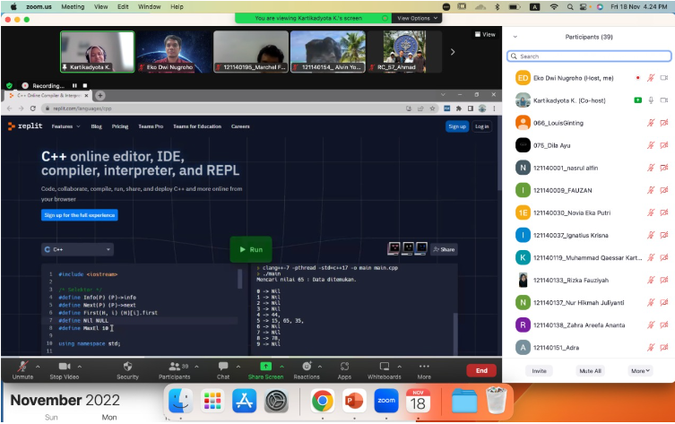 Kegiatan Kuliah Tamu 14 dengan tema “Algoritma dan Struktur Data” yang dilaksanakan oleh Program Studi Teknik Informatika bertujuan untuk meningkatkan mutu pendidikan tinggi secara berencana dan berkelanjutan, khususnya dalam pengembangan Program Studi Teknik Informatika.