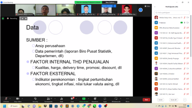 Kegiatan “Dosen Tamu / Guest Lecture pada Mata Kuliah Data Warehouse/Data Mining” yang diikuti oleh mahasiswa Program Studi Teknik Informatika bertujuan untuk meningkatkan mutu pendidikan tinggi secara berencana dan berkelanjutan, khususnya dalam pengembangan Program Studi Teknik Informatika. Narasumber dalam acara “Dosen Tamu / Guest Lecture pada Mata Kuliah Kecerdasan Buatan” Program Studi Teknik Informatika adalah Bapak Ony Prabowo, S.Kom., M.M.T., selaku praktisi dari INIXINDO Surabaya.